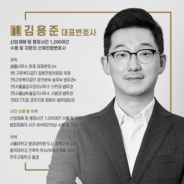 경우에 따라서는 평택산업재해변호사의 도움 없이 단독으로 사건을 처리하여 회사로부터 제대로 된 보상을 받지 못하는 경우가 종종 발생합니다. 사고 당시의 구체적인 상황으로 미루어 볼 때 근로자의 안일한 태도나 작업장 규정을 위반한 위험한 행동으로 사고가 발생한 경우 작업장 책임을 유추하기 어려울 수 있습니다. 또한 산업재해 소송 시 사업주들은 지시 없이 업무를 수행하다 사망했다고 주장하는 경우가 많아 구체적인 경위를 확인하기 위해서는 평택산업재해 변호사의 도움이 필요하다. 산재의 경우 승소판결을 받는 과정이 쉽지 않기 때문에 법률자문을 받는 것이 바람직합니다. 직장에서 가족이 사망하면 유족들은 급하지 않기 때문에 증거를 확보하지 못할 수도 있습니다. 그러나 인과관계를 입증하기 위해서는 구체적인 자료를 모으는 것이 중요하므로 평택산업재해전문변호사에게 법률상담을 받는 것이 현명합니다.