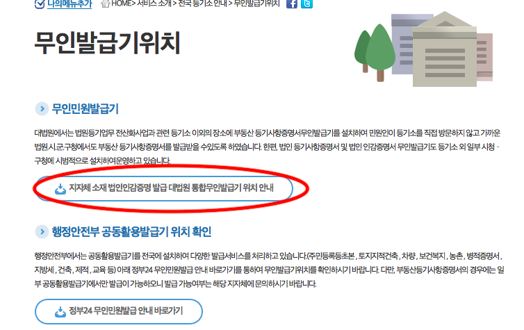 지자체 법인인감증명서 발급을 위한 대법원 통합무인발급기 위치 안내여기를 클릭하시면 PDF 파일을 다운로드 받으실 수 있으며, 법인인감증명서 발급이 가능한 무인정산기를 확인하실 수 있습니다. 이곳에서 방문하고자 하는 지자체를 확인할 수 있지만 간혹 고장이나 기타 사유로 디스펜서가 조제되지 않는 경우가 있습니다.
